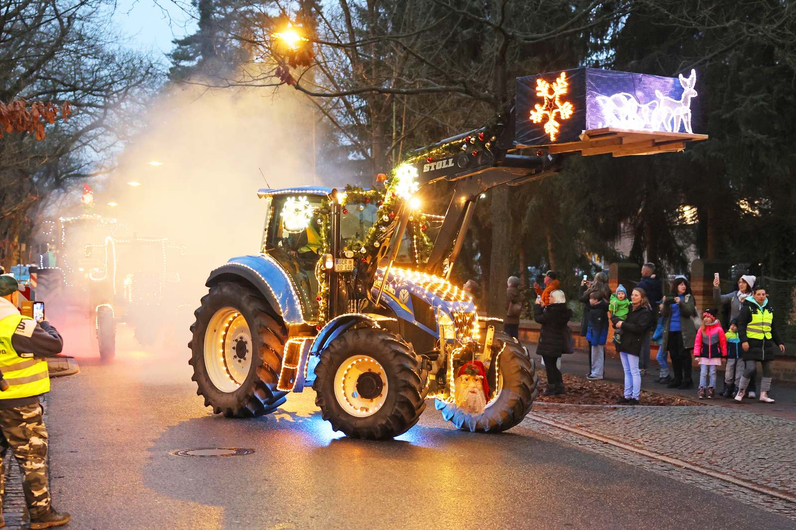 Festlich geschmückte Traktoren, weihnachtliche Klänge eines Schülerchors und jede Menge Geschenke: Die Lichterfahrt des Vereins Bauern mit Passion e. V. hat am Werner Forßmann Klinikum Eberswalde für strahlende Gesichter bei Jung und Alt gesorgt. Die Gruppe engagierter Landwirtinnen und Landwirte aus verschiedenen Landkreisen, hat es sich zum Ziel gesetzt, mit dieser besonderen Geste und gesammelten Spenden ein Lächeln in die Gesichter der kranken Kinder zu zaubern. Neben dem beeindruckenden Anblick der leuchtenden Engel und Traktoren erwartete die Besucherinnen und Besucher ein kleiner, aber feiner Weihnachtsmarkt mit Speis und Trank. Ein besonderer Höhepunkt war der Auftritt des Schüler-Chors sowie der Bläserklasse der Bruno-H.-Bürgel Schule Eberswalde, der mit weihnachtlichen Liedern zum Mitsingen eine besinnliche Atmosphäre schuf. Auch der Weihnachtsmann durfte an diesem besonderen Tag nicht fehlen. Die Bauern mit Passion e. V. sammeln mit ihrer Aktion Sach- und Geldspenden, die direkt in die Wünsche der Kinder umgesetzt werden – darunter Bastelmaterialien, Spielzeug und süße Überraschungen.